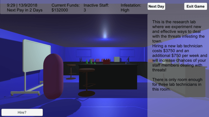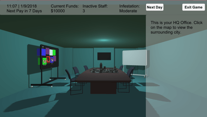 In response to this we created Crisis Management a prototype game that places the player in command of a bio security response team in a small town outbreak of pests.