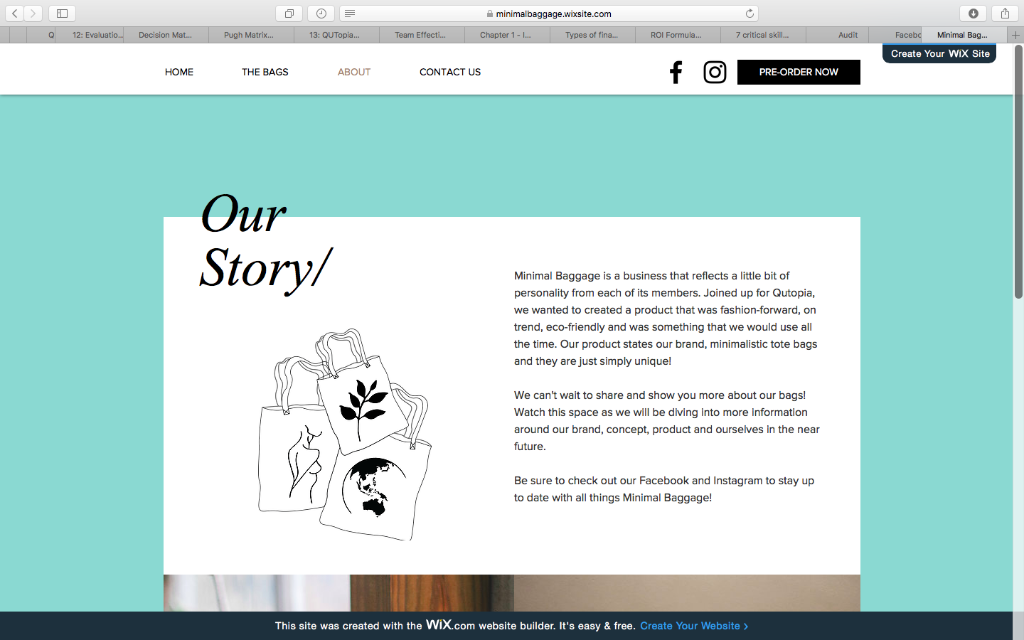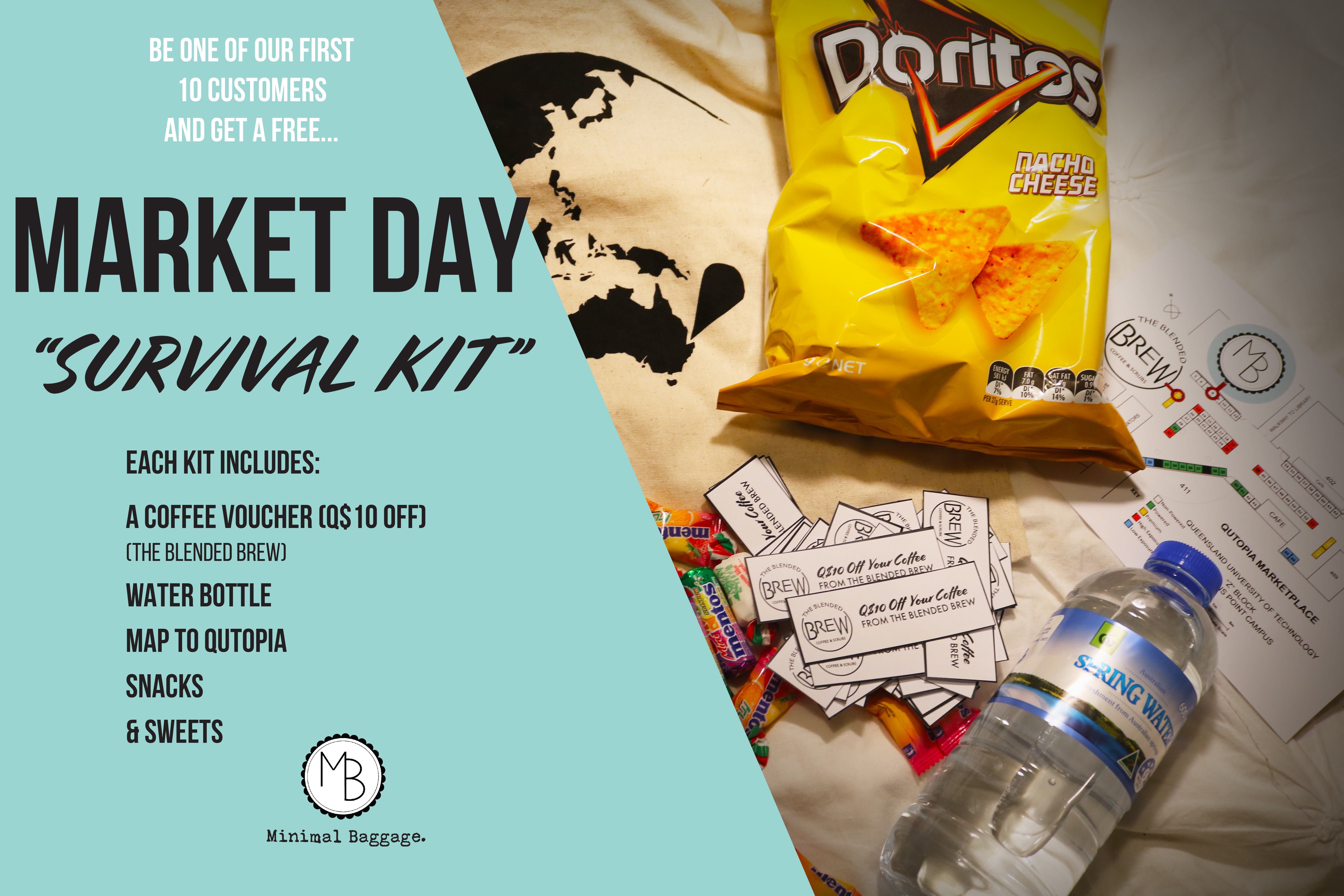 While at university during a practical marketing subject, we were required as a team to develop, promote and market a product at a university run market weekend. We created Minimal Baggage, a brand focused on bringing stylish and environmentally conscious tote bags to the QUT market.